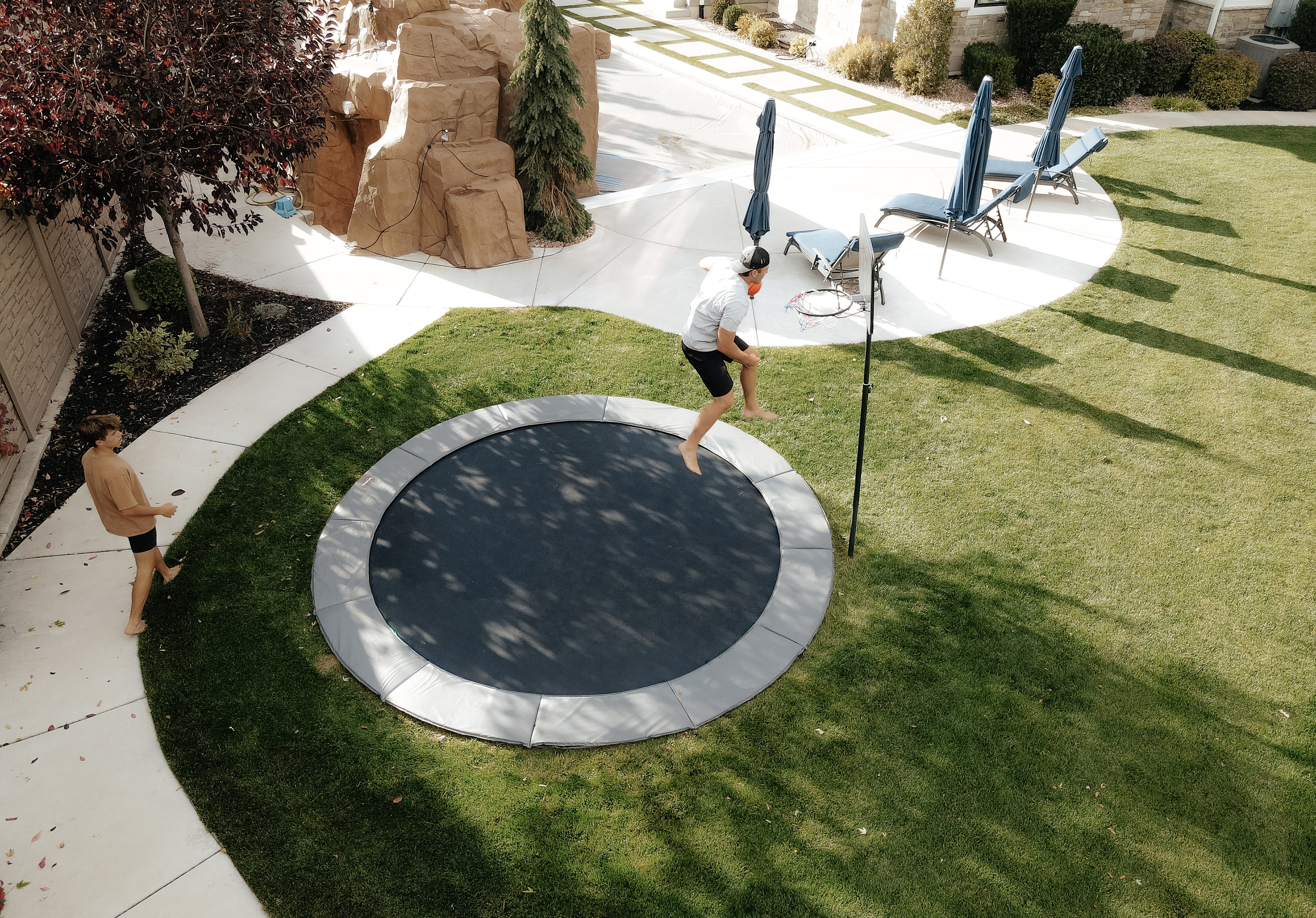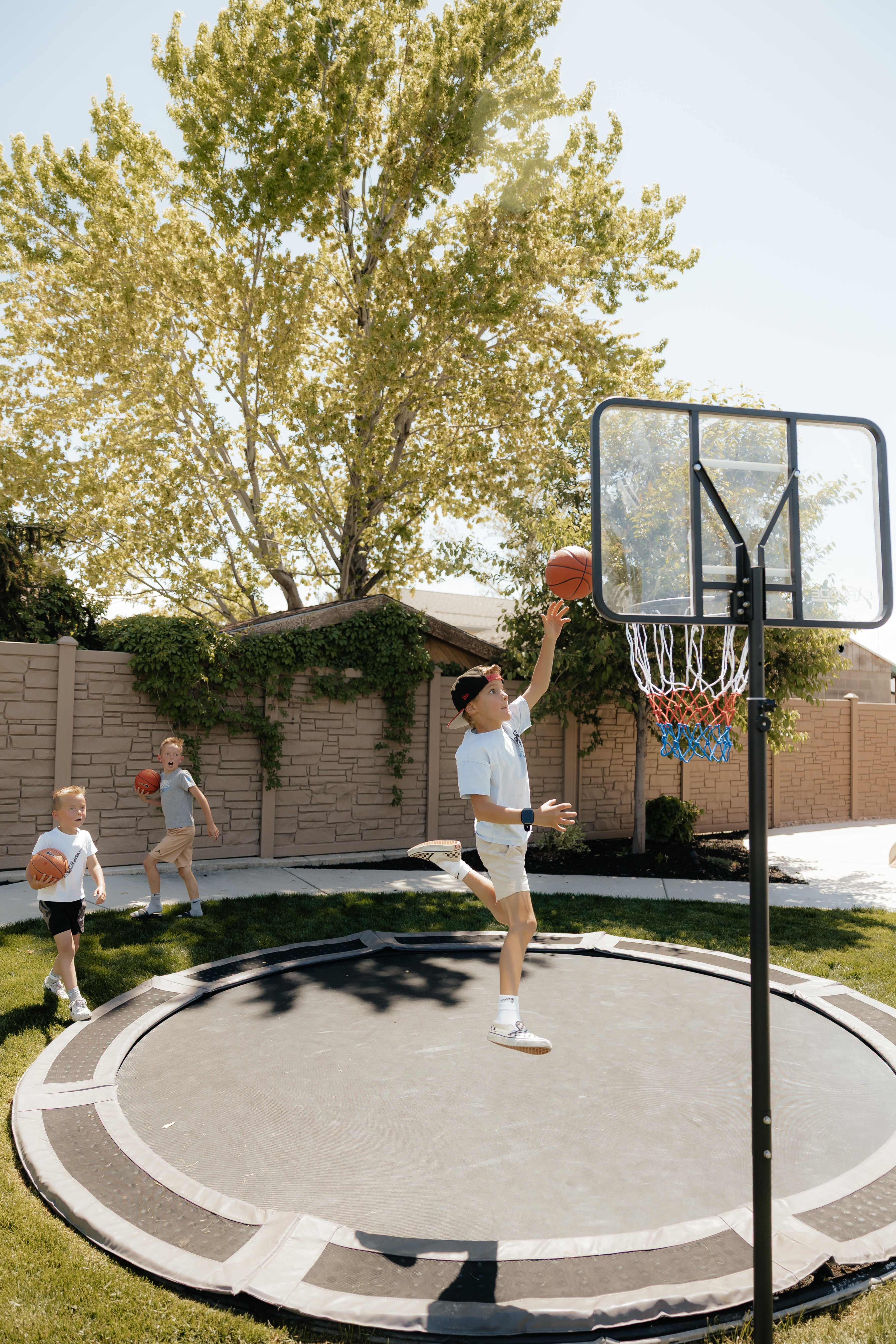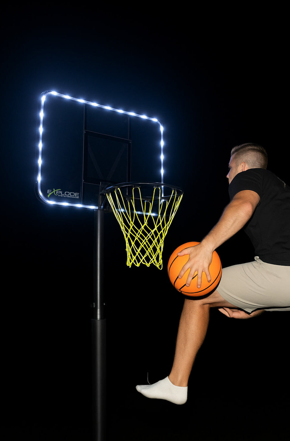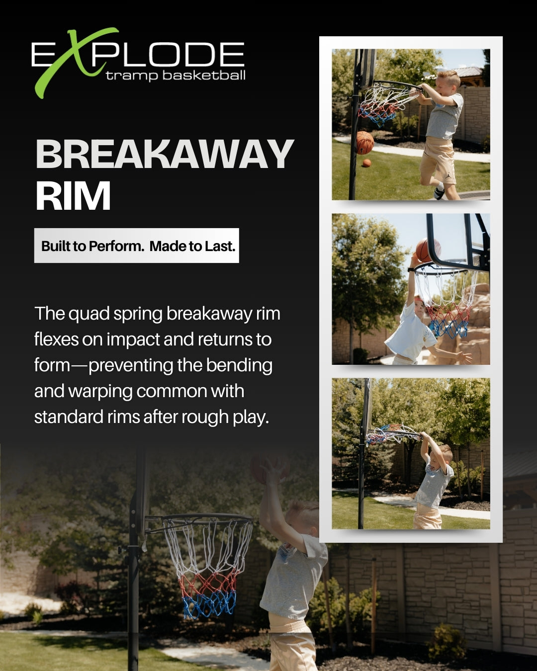 Tired of cheap trampoline hoops that bend and break after a few dunks? The EXPLODE Basketball Hoop is built tough to withstand every slam and bounce. With an easy-to-install ground anchor, it stays secure next to your trampoline for endless, hard-hitting fun. Ready to let your kids dunk without limits? Choose EXPLODE.
