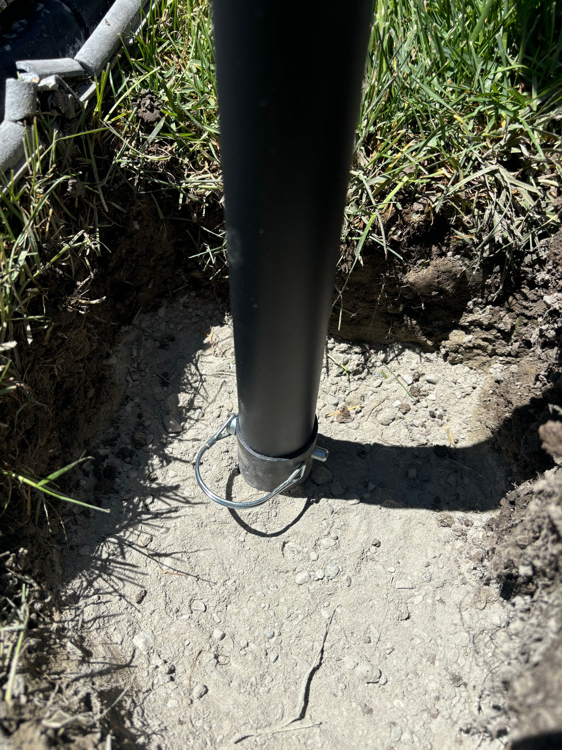Begin by digging a 12" x 12" hole and adding a layer of pea gravel for drainage. Insert the ground sleeve, surround it with dry concrete mix, then pour water directly over the top. Allow 24–48 hours for the concrete to cure, ensuring a secure and long-lasting foundation.